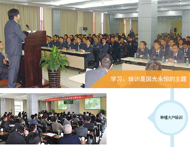 董事長原來是師范校的教師,他把教書育人也帶到了國光企業(yè),從創(chuàng)業(yè)初期就重視對(duì)員工進(jìn)行培訓(xùn),而且還編寫技術(shù)資料對(duì)經(jīng)銷商和用戶進(jìn)行培訓(xùn)。早年的手寫保鮮劑資料就是一個(gè)例證,創(chuàng)業(yè)至今從沒有停止過對(duì)員工和用戶的培訓(xùn),每年新生入公司要進(jìn)行至少一個(gè)月的培訓(xùn),員工每兩個(gè)月要培訓(xùn)一次,年底全體員工還要學(xué)習(xí)培訓(xùn)近一個(gè)月。不僅對(duì)員工是這樣,國光每年 還把經(jīng)銷商、種植戶請(qǐng)到公司來培訓(xùn)學(xué)習(xí)。國光每年10月份起各種培訓(xùn)會(huì)議就不斷。這種學(xué)習(xí) 文化、學(xué)習(xí)型企業(yè)不僅培養(yǎng)了大量的優(yōu)秀員工和經(jīng)銷商,還給種植戶和同行留下了深刻的印象, 稱國光是業(yè)內(nèi)的黃浦軍校。