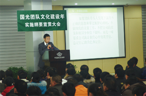 隨著企業(yè)的進(jìn)一步壯大,營銷模式逐步轉(zhuǎn)型,技術(shù)服務(wù)的加強(qiáng),國光品牌有了進(jìn)一步的提升。同時(shí)注意到國內(nèi)一些企業(yè)在短期行為的驅(qū)使下,不重視產(chǎn)品質(zhì)量、不講誠信,導(dǎo)致企業(yè)壽命短。而世界上重視產(chǎn)品質(zhì)量和品牌的知名企業(yè)大都有百年以上的歷史。國光基于這些感悟,在總結(jié)國光發(fā)展的成敗得失和類比剖析同行業(yè)基礎(chǔ)上,形成了『做百年、做品牌』的國光企業(yè)理念,并用這一理念去指導(dǎo)、規(guī)范『做質(zhì)量、做誠信、做特色、做服務(wù)、做祥和、盡社會(huì)責(zé)任、重企業(yè)文化、重人才培養(yǎng)』的子理念行為,從而達(dá)到用品牌取勝,百年不衰。