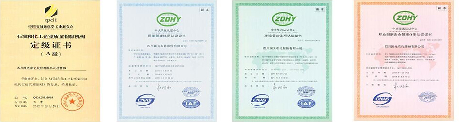 國光視產(chǎn)品為企業(yè)生命。公司通過了ISO19001質(zhì)量管理體系認(rèn)證,對產(chǎn)品生產(chǎn)流程進(jìn)行嚴(yán)格的質(zhì)量管理。國光質(zhì)管部是國家石油和化學(xué)工業(yè)協(xié)會認(rèn)定的“A級質(zhì)檢機(jī)構(gòu)”,配備了Agilent1100、1200A、1200B、1200C液相色譜儀、Agilent 6820氣相色譜儀、原子吸收分光光度計、原子熒光光譜儀等現(xiàn)代化的檢驗檢測設(shè)備。同時強(qiáng)化企業(yè)標(biāo)準(zhǔn)化建設(shè)和計量管理以確保產(chǎn)品質(zhì)量。 |