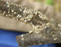 屬于同翅目,體外有蠟質(zhì)介殼。卵通常埋在蠟絲塊中、雌體下或雌蟲分泌的介殼下。 介殼蟲繁殖能力強(qiáng),一年發(fā)生多代。卵孵化為若蟲,經(jīng)過短時(shí)間爬行,營固定生活,即形成介殼。介殼蟲抗藥能力強(qiáng),一般藥劑難以進(jìn)入體內(nèi),防治比較困難。