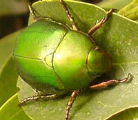 屬于鞘翅目(特點(diǎn)前翅堅(jiān)硬,后翅膜質(zhì)),是咀嚼式口器,所以說被害植物有缺口、孔洞燈機(jī)械損傷,嚴(yán)重時(shí)可以吃光葉片,咬斷根莖。常在傍晚至晚上10時(shí)咬食最盛。常見的有銅綠金龜子、朝鮮黑金龜子、茶色金龜子、暗黑金龜子等。多在夜間活動,有趨光性。