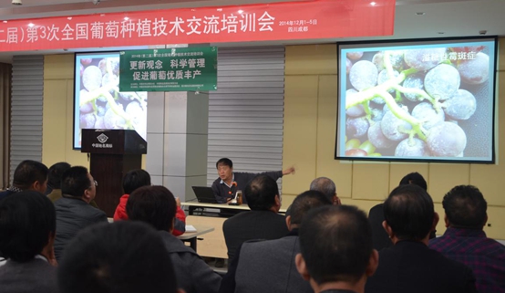 2014年12月1日—5日,由中國(guó)農(nóng)學(xué)會(huì)葡萄分會(huì)、中國(guó)果品流通協(xié)會(huì)葡萄分會(huì)主辦,中國(guó)農(nóng)藥發(fā)展與應(yīng)用協(xié)會(huì)植物生長(zhǎng)調(diào)節(jié)劑專業(yè)委員會(huì)、國(guó)光承辦的2014年(第二屆)第三次全國(guó)葡萄種植技術(shù)交流培訓(xùn)會(huì)在國(guó)光召開,來(lái)自安徽、湖北、四川、山西、江蘇等地的200余名葡萄種植戶參加了會(huì)議。