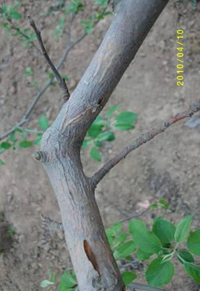 2.病疤治療是目前防治此病的有效方法。可在晚秋和早春刮治病疤呈梭形立茬,后涂藥促進(jìn)愈傷組織生長(zhǎng),或用劃道法治療病疤。劃道法是劃病部成0.5厘米寬的縱道,再用甲基硫菌靈等殺菌劑或愈傷涂膜劑涂抹。