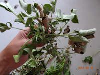 癥狀:病菌從子葉或幼根侵入植株,在根頸部產生黃褐色水漬狀病斑,后變黑褐色,引起根基組織腐爛。當潮濕環(huán)境時,病部產生分生孢子器(即黑色小突起),病部表皮易剝落,纖維組織外露。當環(huán)境干燥時,病部表皮凹陷,緊貼莖上,成株期感病后,約10~30天全株枯死,發(fā)病部位多在莖基部貼地面,有時也出現(xiàn)主莖和側枝分期枯死現(xiàn)象。
