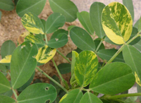 癥狀:花生出苗后即見發(fā)病。初在頂端嫩葉上現(xiàn)褪綠黃斑,葉片卷曲,后發(fā)展為黃綠相間的黃花葉、網狀明脈和綠色條紋等癥狀。病害發(fā)生后期癥狀有減輕趨勢。