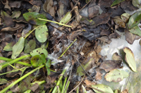 癥狀:(1)葉片:發(fā)病,病斑暗褐色,近圓形,直徑3~8毫米,具不明顯輪紋。潮濕時,病斑呈水漬狀軟化腐爛。(2)莖部:莖部發(fā)病,病斑初為褐色,后變?yōu)樯詈稚,最后呈黑褐色。造成莖桿軟腐,植株萎蔫枯死。在潮濕條件下,病斑上布滿灰褐色絨毛狀霉狀物和灰白色粉狀物,即病菌菌絲、分生孢子梗和分生孢子;ㄉ鷮⒔斋@時,莖的皮層及木質部之間產生大量小菌核,有時菌核能突破表皮外露。(3)果針:果針受害后,收獲時易斷裂。(4)莢果:莢果受害后變?yōu)楹稚,在表面或莢果里生白色菌絲體及黑色菌核,引起子粒腐敗或干縮。大菌核病引起癥狀和小菌核病相似,但僅在莖蔓上發(fā)生,后期產生菌核較大。