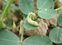 癥狀:在花生尚未出土時,蚜蟲就能鉆入土內在幼莖嫩芽上危害,花生出土后,多在聚集頂端心葉及嫩葉背面吸取汁液,受害后的葉片嚴重卷縮。開花后主要聚集于花萼管及果針上危害,果針受害雖能入土,但莢果不成實,秕果多。受害嚴重的花生,植株矮小,生長停滯。猖獗發(fā)生時,蚜蟲排出大量蜜露,引起霉菌發(fā)生,使花生莖葉變黑,甚至整株枯萎死亡。