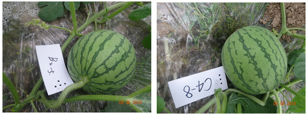 2015年4月,我們江西瑞金武陽鎮(zhèn)帥童無籽瓜上做了國光座瓜靈(0.1%氯吡脲)提高西瓜坐瓜率試驗示范。試驗結(jié)果表明:在西瓜雌花開放當(dāng)天,用國光座瓜靈10毫升兌水1.5-2公斤,噴施瓜胎正反面,可明顯提高西瓜坐果率,用藥的西瓜生長良好,果型端正。
