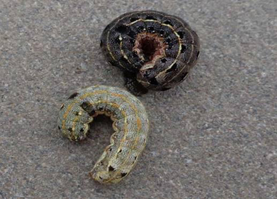 4.發(fā)育歷期 卵的孵化適溫是24℃左右,幼蟲(chóng)在氣溫25℃時(shí),歷經(jīng)14-20天,化蛹的適合土壤濕度是土壤含水量在20%左右,蛹期為11-18天。