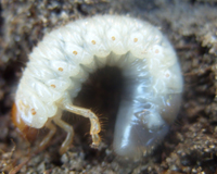 蠐螬屬鞘翅目,金龜子科,是草坪和苗木主要的地下害蟲(chóng),主要以啃食植株根部為害,根被咬傷、咬斷后,植株無(wú)法從土壤中吸收到養(yǎng)分和水分,較快地成片枯死。蠐螬危害后的草坪,能像地毯一樣成片被翻起,草變得枯黃;危害后的花卉、苗木,植株逐漸枯萎,嚴(yán)重的導(dǎo)致死亡。蠐螬在春季和秋季是為害多發(fā)期,活動(dòng)生長(zhǎng)適溫為13_18℃,由于在土壤中危害,藥液很難接觸到蟲(chóng)體,殺蟲(chóng)非常困難,已成為世界性頭疼的害蟲(chóng)。